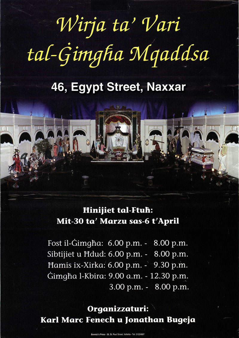 Din il-wirja hija mtella minn Karl Fenech bl-ghajnuna ta’ Jonathan Bugeja. U tinsab fi triq l-Egittu Naxxar.